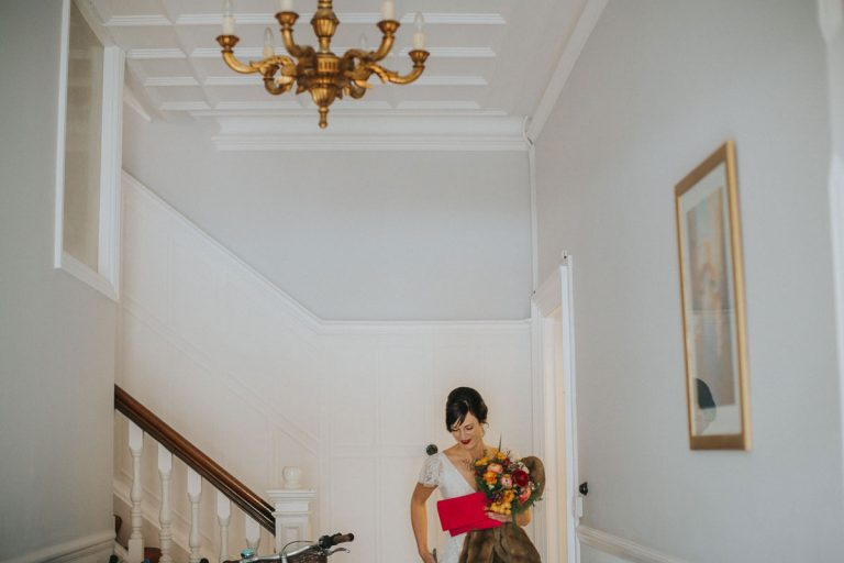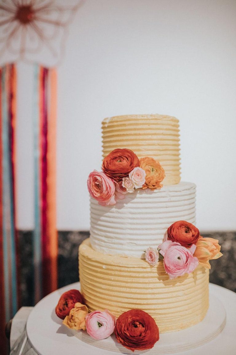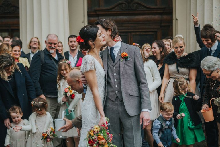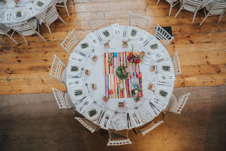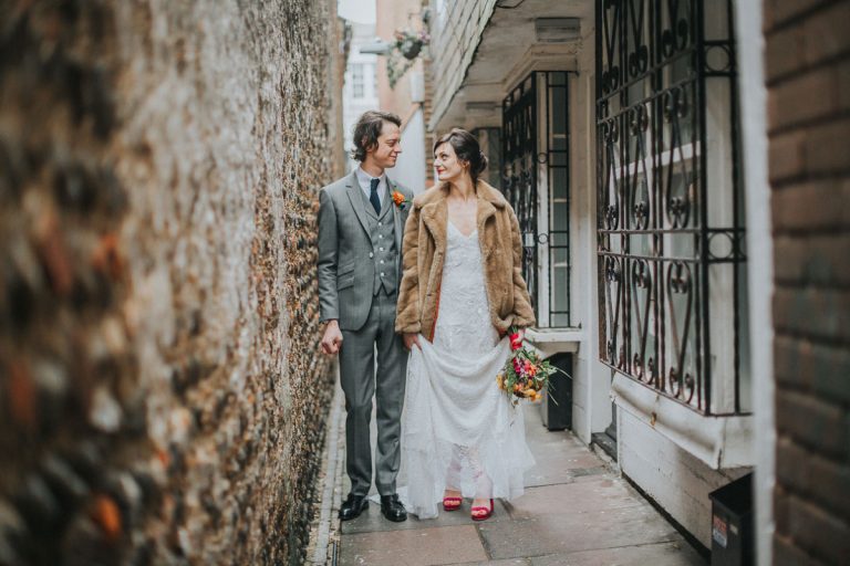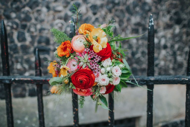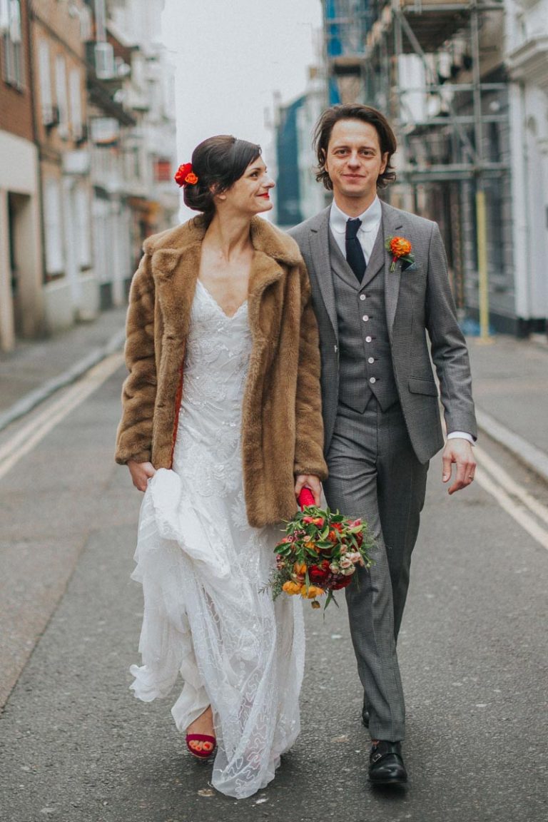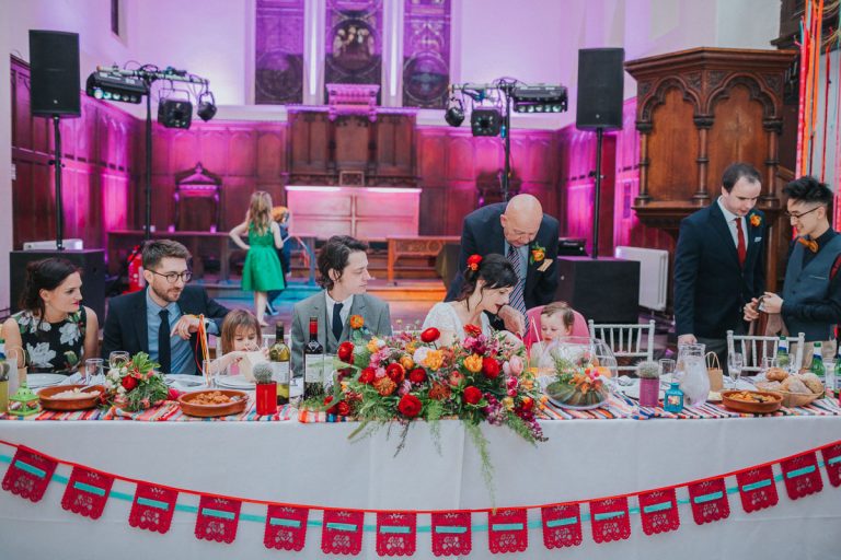 [G]eorgia and Jim chose the wonderful Fabrica in Brighton for their incredible wedding reception. This gorgeous pair might be very laid back but they don’t do things by half and utterly went for it with a Mexican meets Dinosaur, bright, colourful theme. I thought their florist Bettie Rose did a cracking job at translating that brief into flowers and the whole thing looked sensational. As did Georgia thanks to the brilliant Nicky at Pretty Pout.